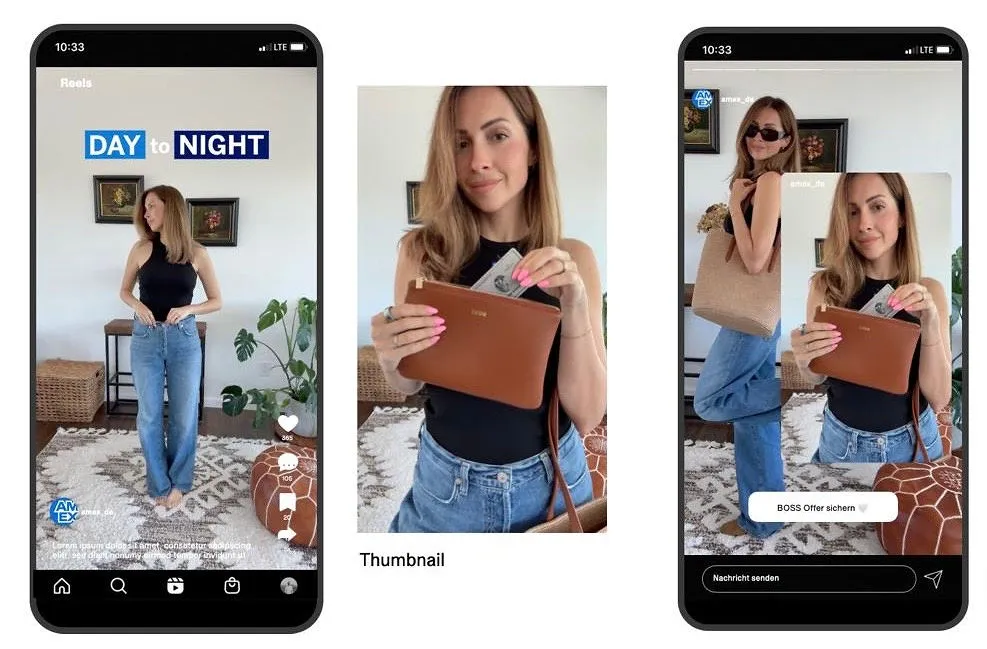 Content Creation für eine Kooperation zwischen American Express und HUGO BOSS: Konzeption und Umsetzung eines Reels mit dem Motto Day to Night: Styling-Transformation von einem Tages- zu einem Abendlook mit Pieces von HUGO BOSS – ergänzt durch Lifestyle-Vlog-Elemente im Alltag und die gezielte Einbindung der AMEX Platinum Card. Produktion in San José, CA im Auftrag von AMEX.